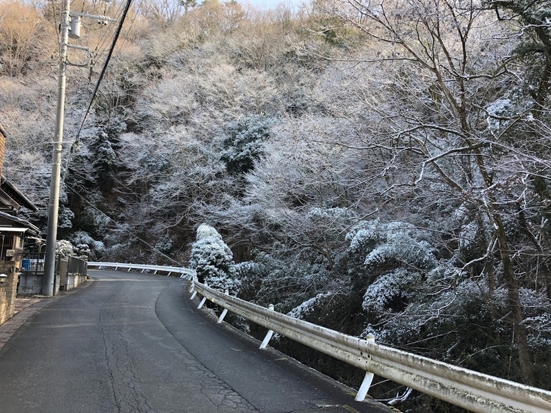 前日の積雪で、木はすっかり雪化粧です。舗装道の積雪はありませんでした。