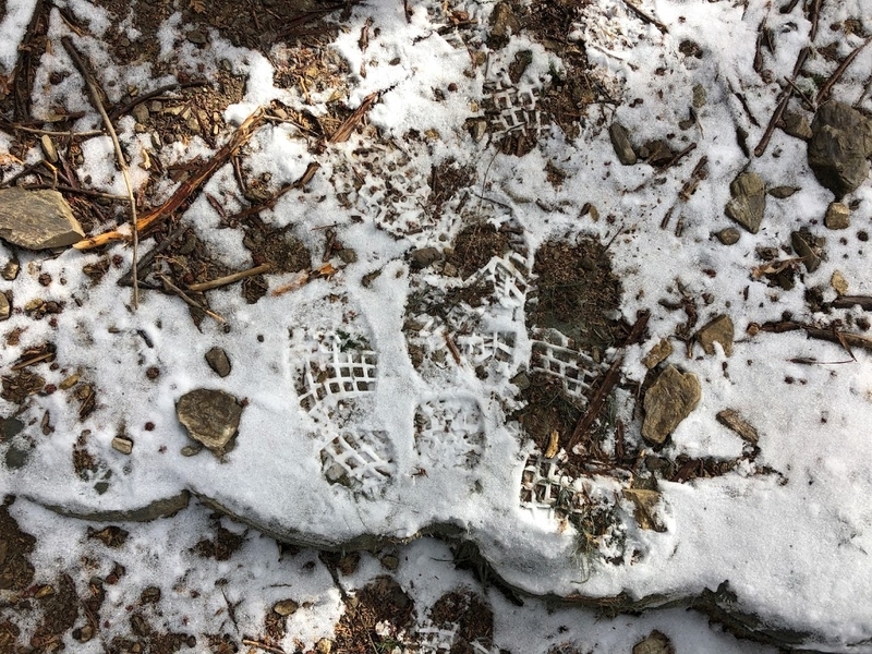 今回に関しては、積雪の状況があまりひどくなかったのと、おそらく雪が積もる前日のうちに取った人の足跡があったおかげで、積雪の中もスムーズに登山できましたが、お守りとして、アイゼンは常に携帯しておくべきと感じました。